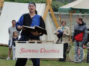 "Flamma Chaotica" präsentiert mit Stolz das Feuerspektakel für jede Gelegenheit. Die Feuerspucker von "Flamma Chaotica" gehen mit Euch auf Tuchfühlung mit dem geheimnisvollen Element der Flammen. Vielerlei Gaukelei und Unterhaltung wird geboten. Und wo, wenn nicht hier bei uns hat man die Chance nicht einen, nicht drei, nein sondern gleich zwei brennende Idioten in Richtung der nächsten Wasserstelle rennen zu sehen? Flamma Chaotica waren 2006 und 2007 bereits in Bacharach dabei und wir freuen uns, dass wir sie nach einer kleinen Unterbrechung auch 2011 mit ihren Feuerdarbietungen wieder in Bacharach begrüßen dürfen.